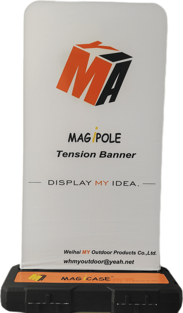 When you install the banner onto the frame,the big sticker can be sticked on the Magicase to raise your Brand more.Also Solar Led or battery can be used on the Magicase to light the fabric.