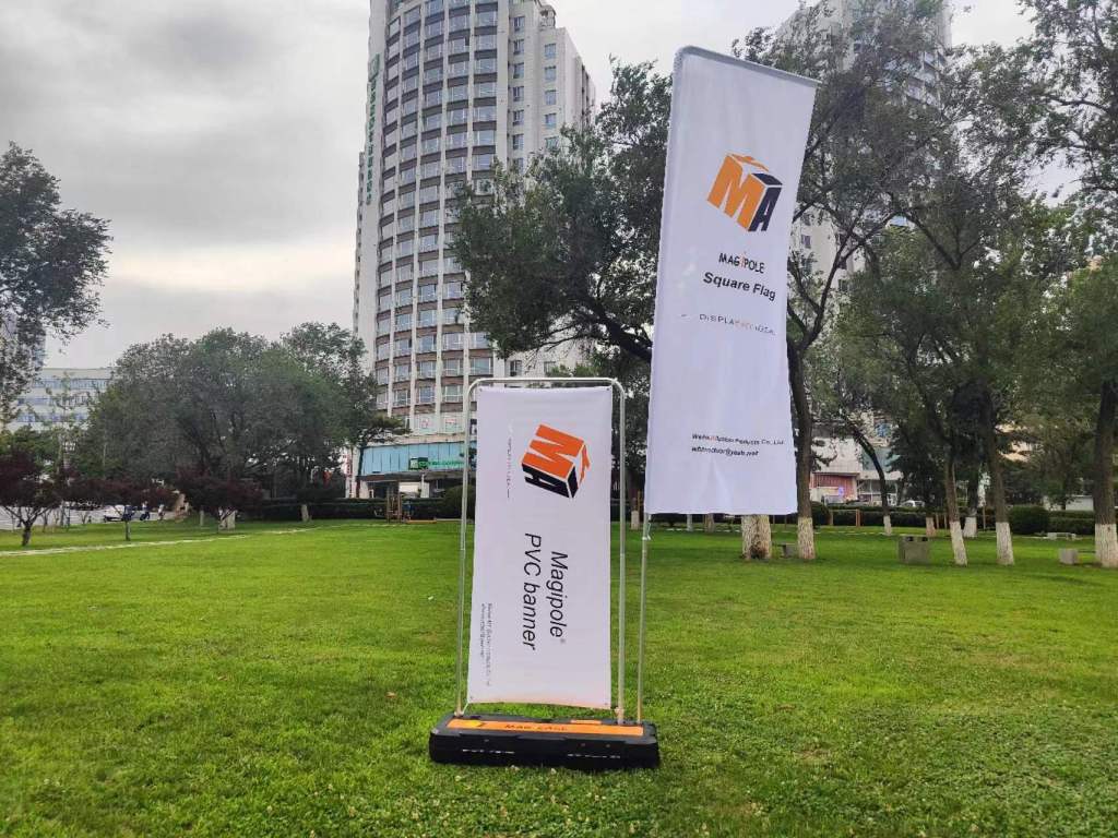 For events of sports,opening ceremony etc,normally portable banner stands for advertising are packed by Oxford carry bag.For outdoor use,water or sand weighted bases are popular as they can keep banner stands or flag banners stable.But these bases are usually packed separately from the frame.It is not convenient to end users and also dealers.That gives us idea to design and produce a hard case which can also be used as base.