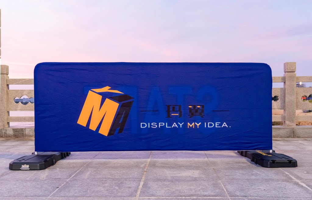 Our Magicase design can supply a combined display of barrier,backdrop and flags,banners.The Magicase can pack and support the barrier banner and flags above it.No need for complicated different bases.Just one step from package into display.