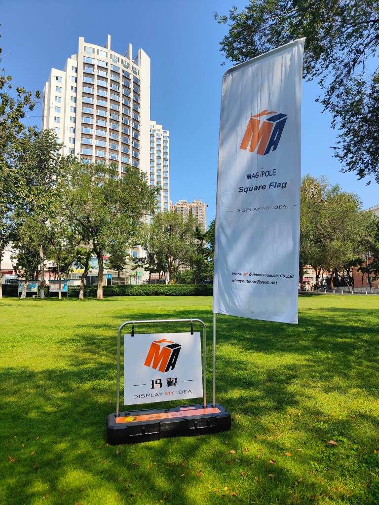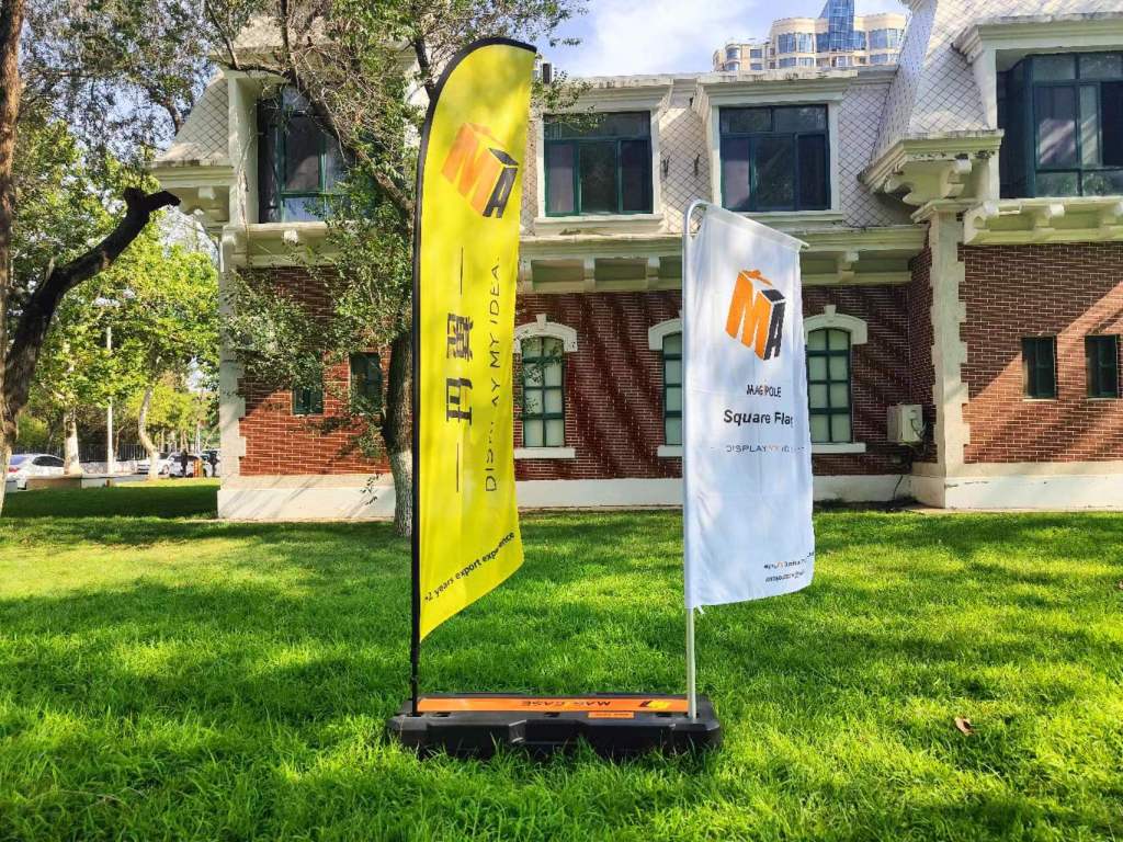 One Magicase can support One Giant flag,Double flags(feather flag or square flag),One banner with one flag,One small swing KT board with one flag.