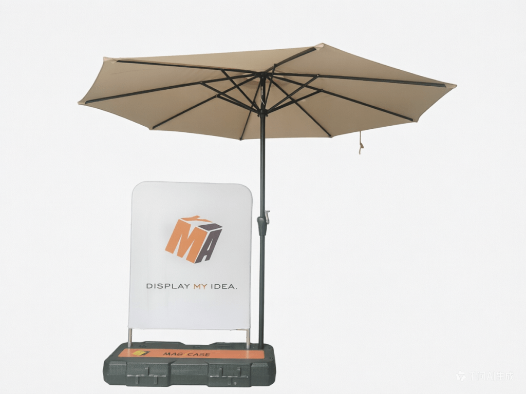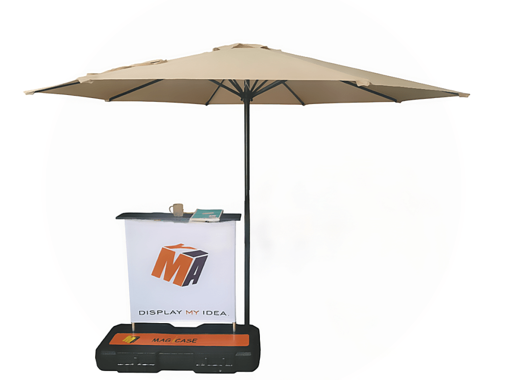 Our Magicase can support Parasols with tube diameter smaller than 38mm.It can support one small KT board at same time.